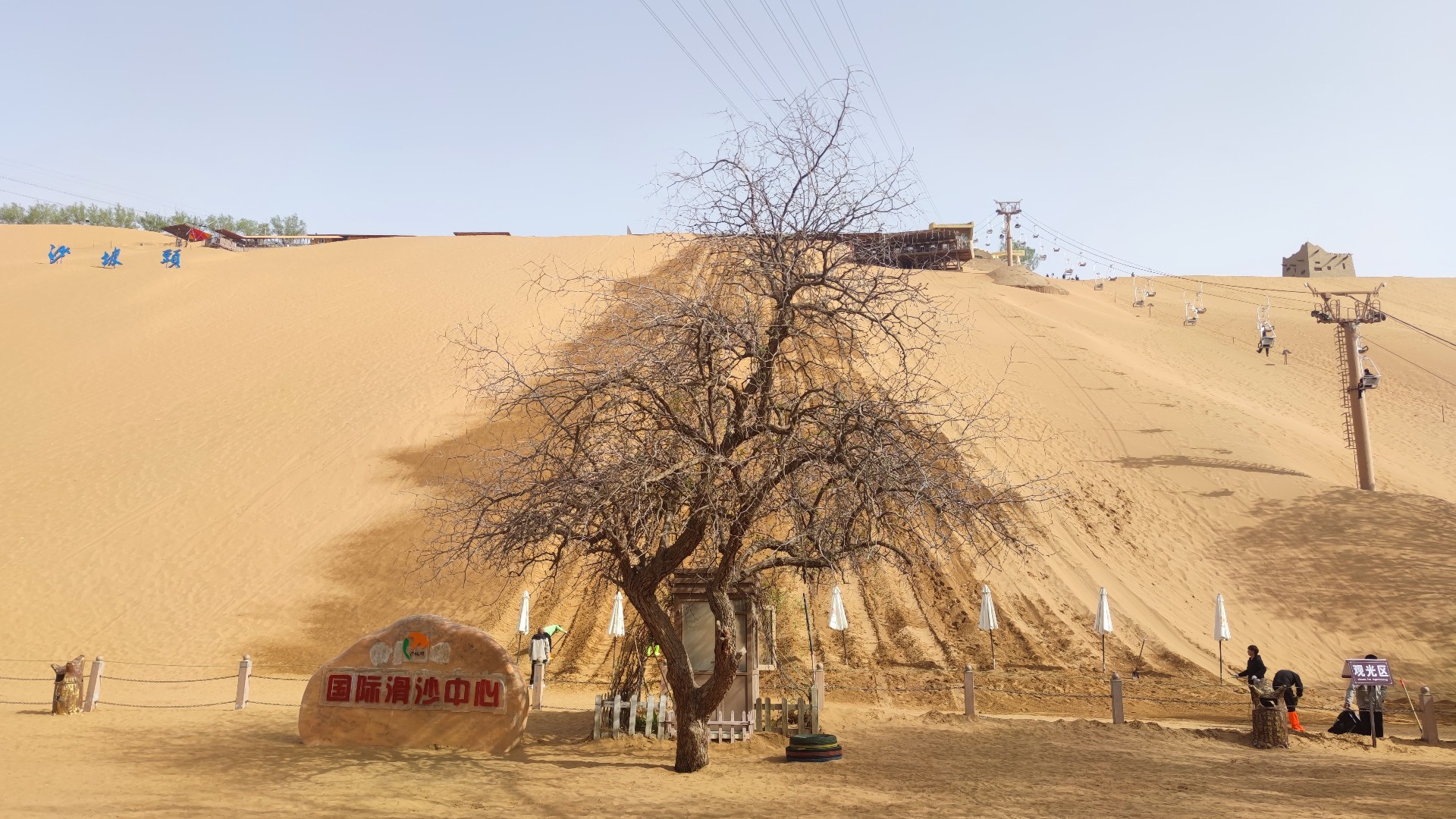 第二天上午游覽了宛若畫卷的沙湖(一半沙漠一半湖)。下午游覽了有著東方好萊塢之稱鎮(zhèn)北堡西部電影城,重溫了《大話西游》和《新龍門客?!贰M砩显谟[山公園吹了晚風(fēng),去逛吃了西北最繁華的懷遠(yuǎn)夜市。
